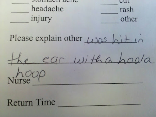 A 5th grader comes looking for me in FS’s office to tell me that he was the victim of a run-by hooping. When I asked him where he was injured, he answered, “the gym.” I guess I needed to be more specific. 😀