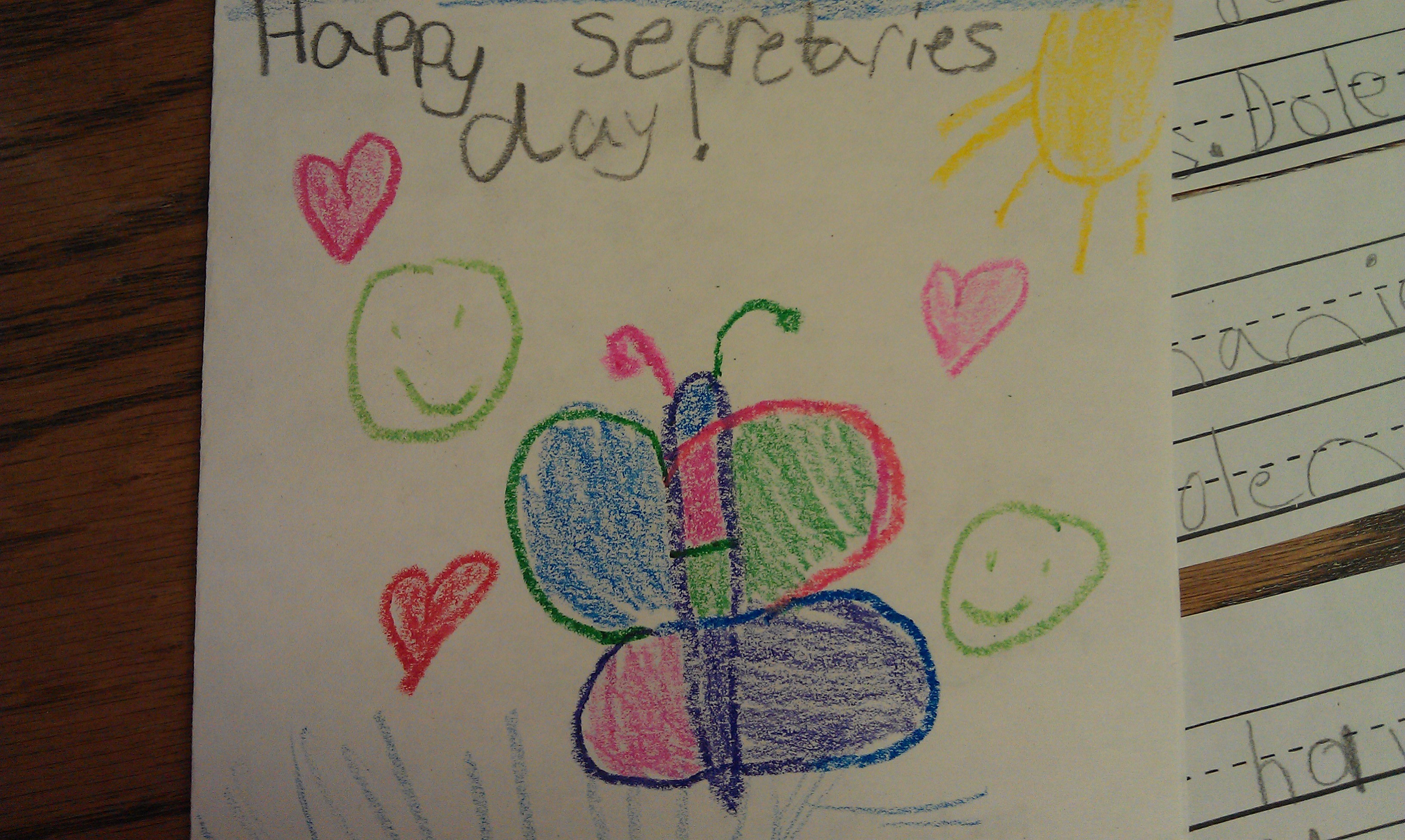 Today is Secretary’s Day. I didn’t know this until I showed up for work and FS’s desk looked like Mardi Gras had barfed all over it. My first though was, “OH CRAP! There’s a Secretary’s day??” Then came, “Can I just tell her that EVERY day should be Secretary’s day?” And finally: