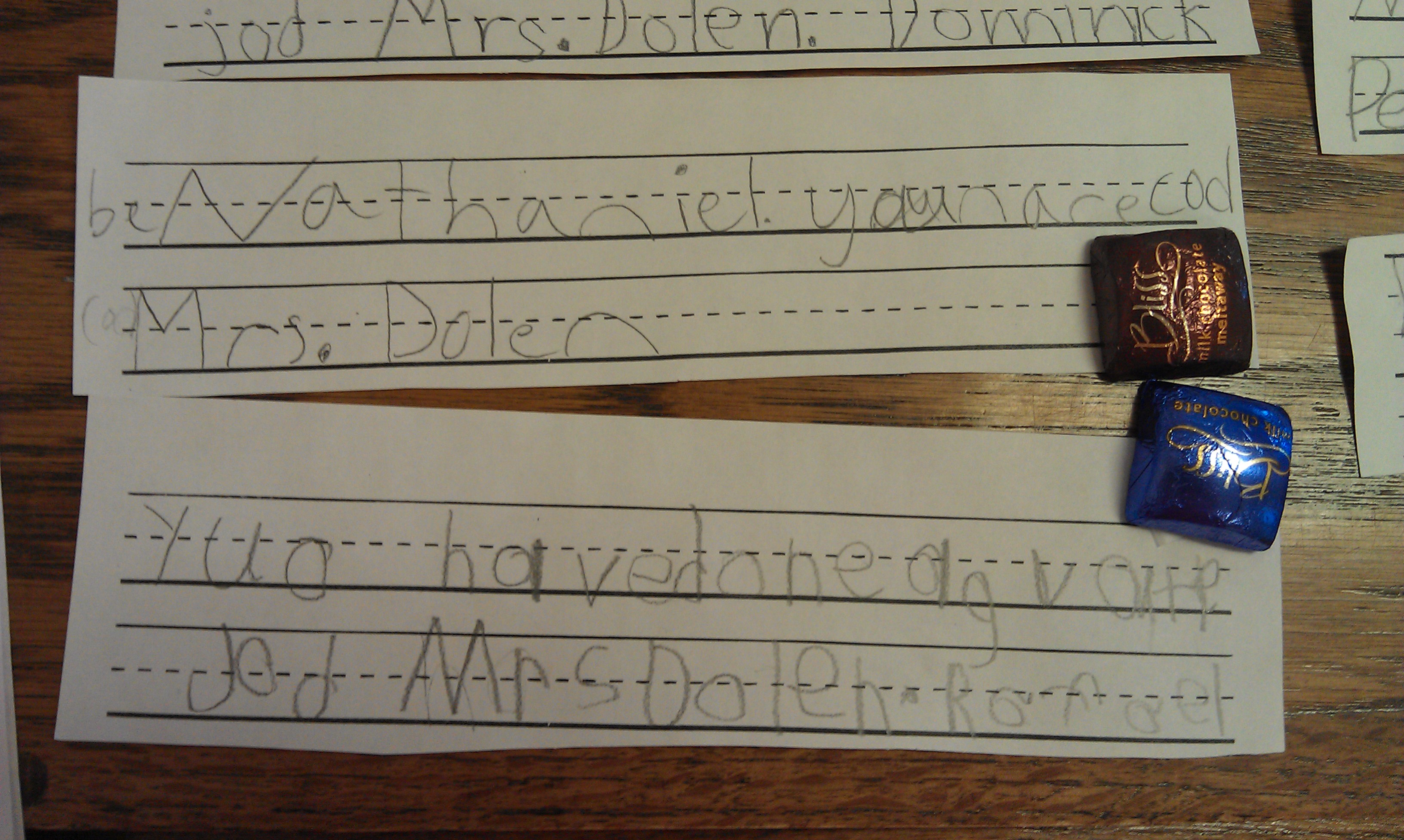 “Mrs. Dolen. You are cod. You have done a gvate jod.”