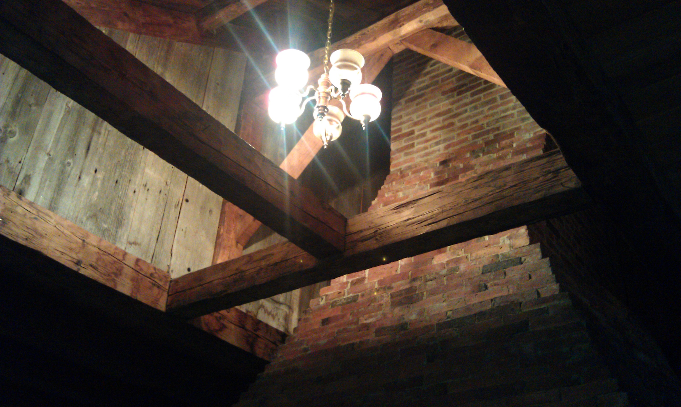 The crazy cool ceiling in the foyer/entryway. The brick is that huge four sided chimney in the center of the 1850s house.