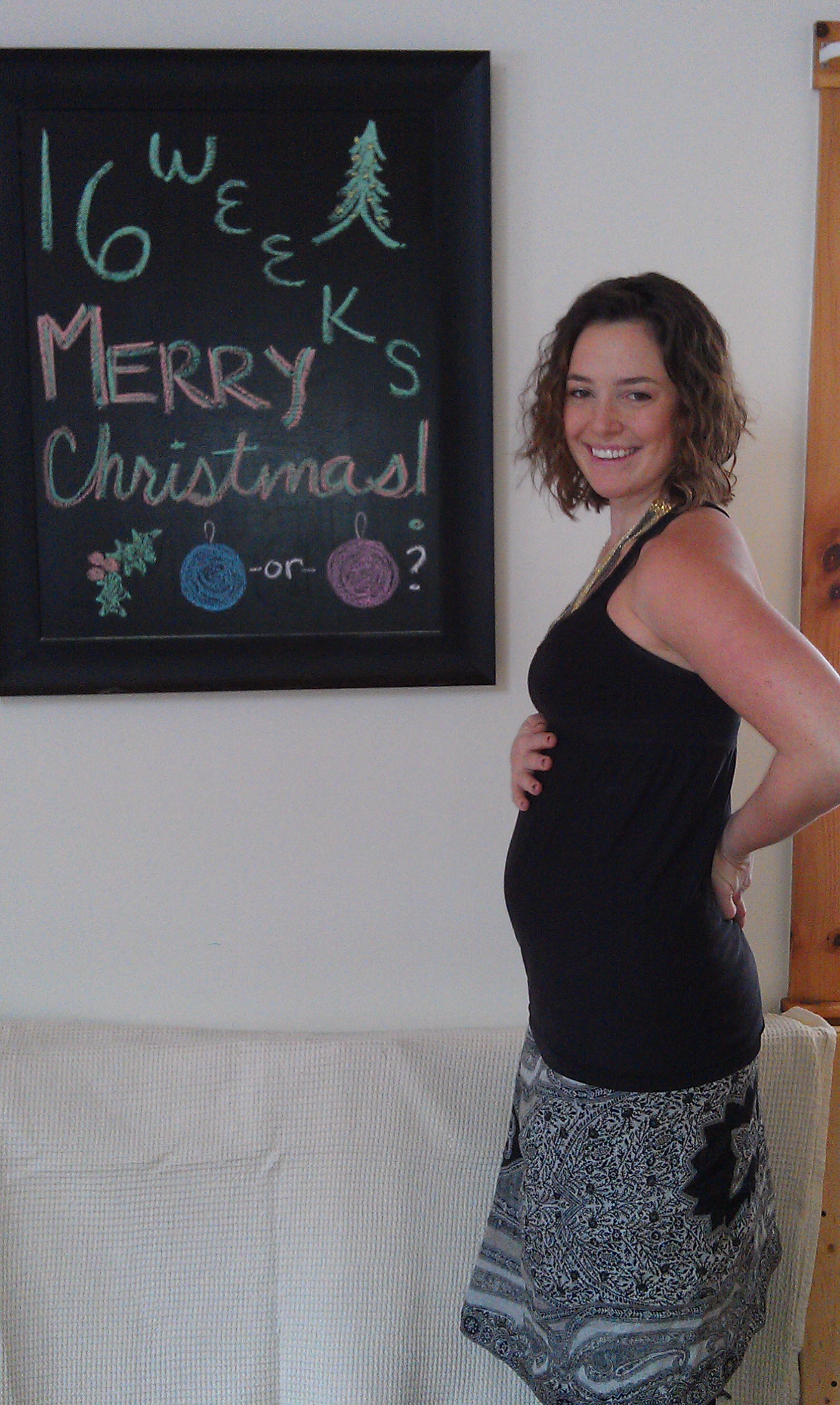 This bump, the real deal, popped out at 15 weeks, 5 days. I know because I woke up feeling great (ie: Not Bloated), and couldn’t suck in that belly for the life of me. Also, baby’s heartbeat was suddenly about 1.5 inches higher on my belly, and I can now hear it from 3 sides, instead of just the front.