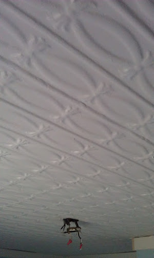 Pressed tin ceilings- now free of lead paint flakes! =) A big thank you to my exasperated and patient husband for helping me save what I had deemed a "critical component" of the perfect nursery!