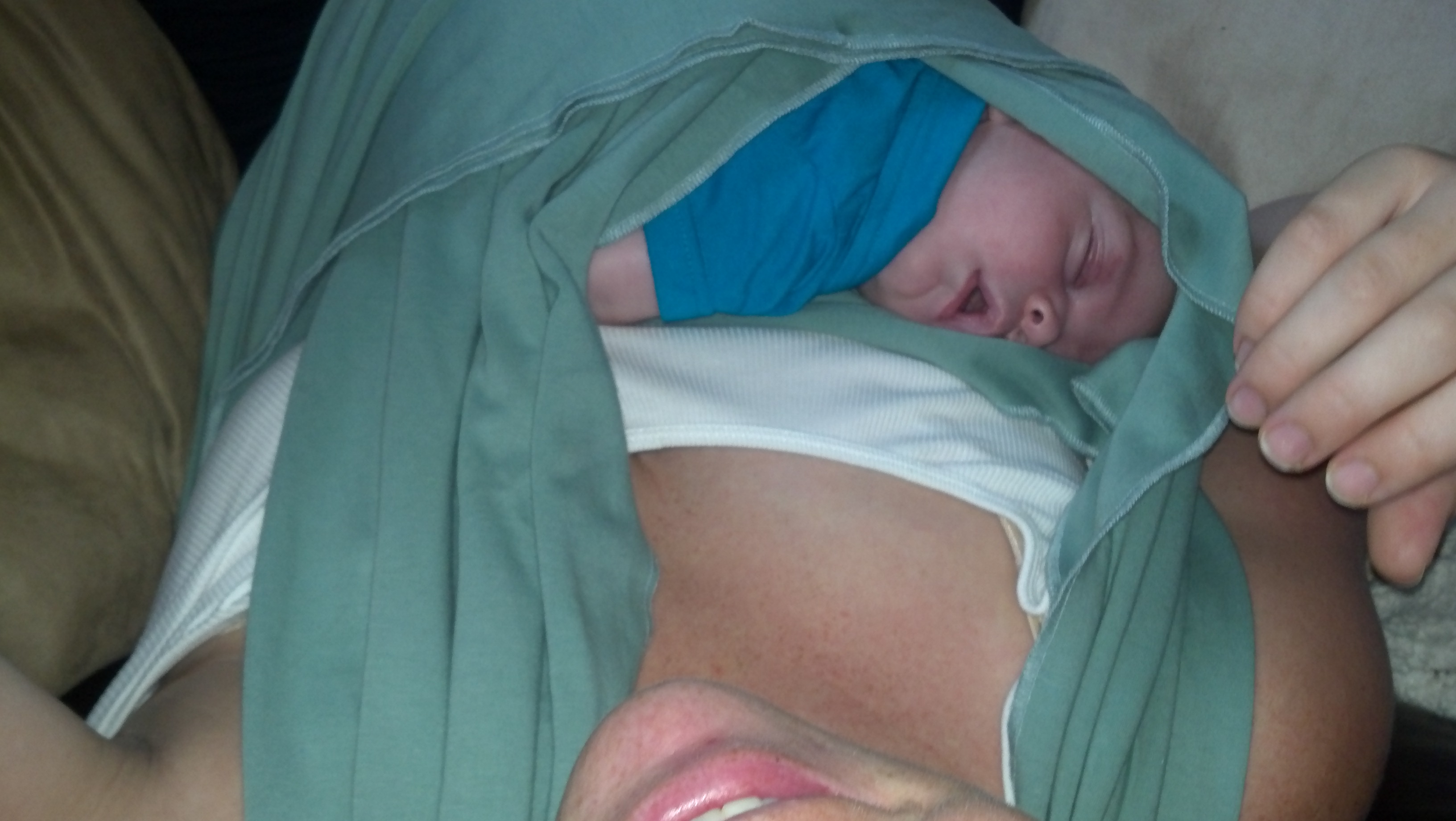 This is what I have dubbed “Baby Jail”. You can see that he’s absolutely furious at being crammed in the moby wrap. =) But really, when he’s fussy in the afternoons, this works miracles!
