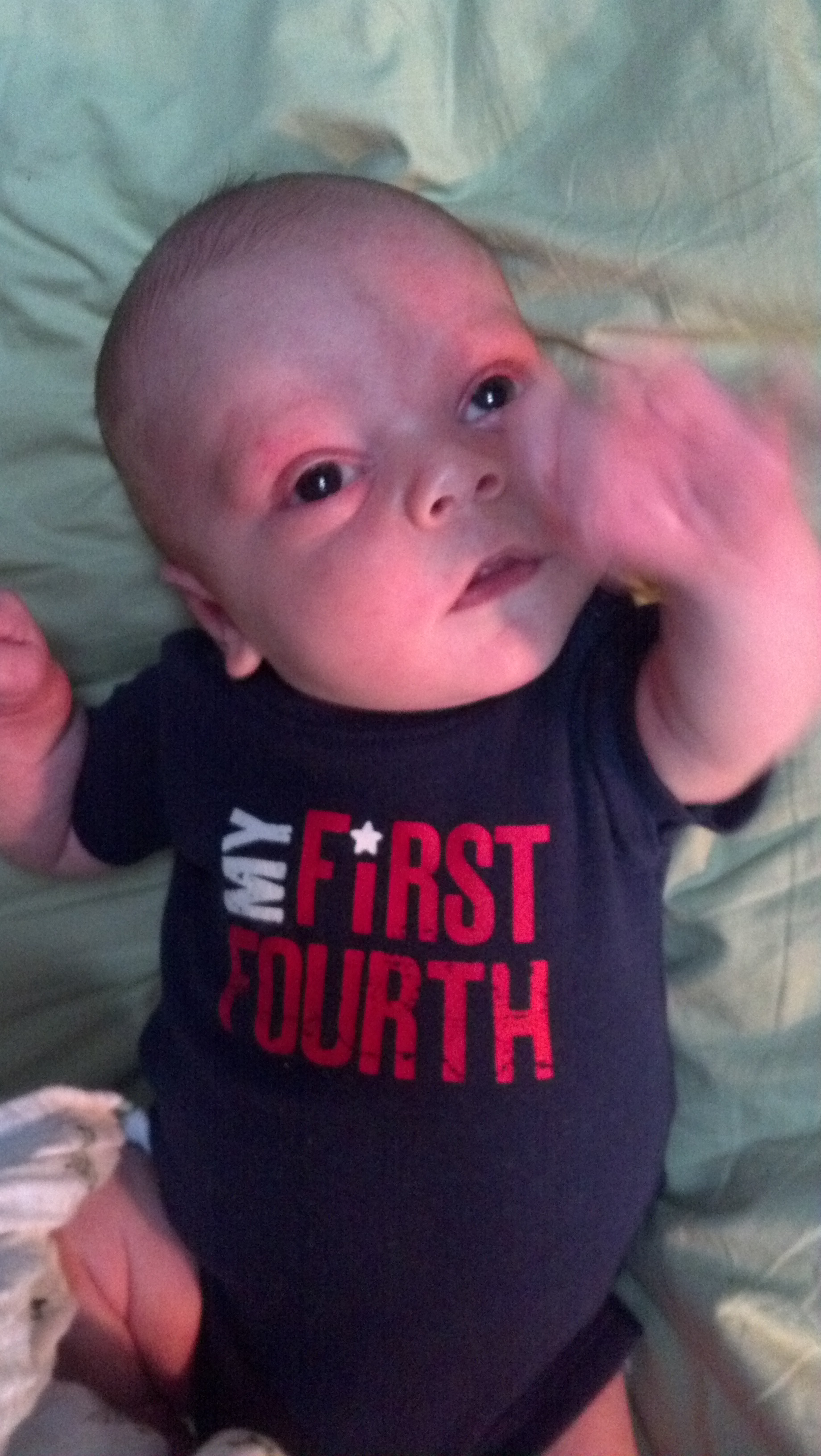 Fourth of July was a bust. He got to wear the cute outfit, but due to thunderstorms and some extra fussiness (maybe it was the weather??), we stayed home. We’ll try for fireworks again next year.