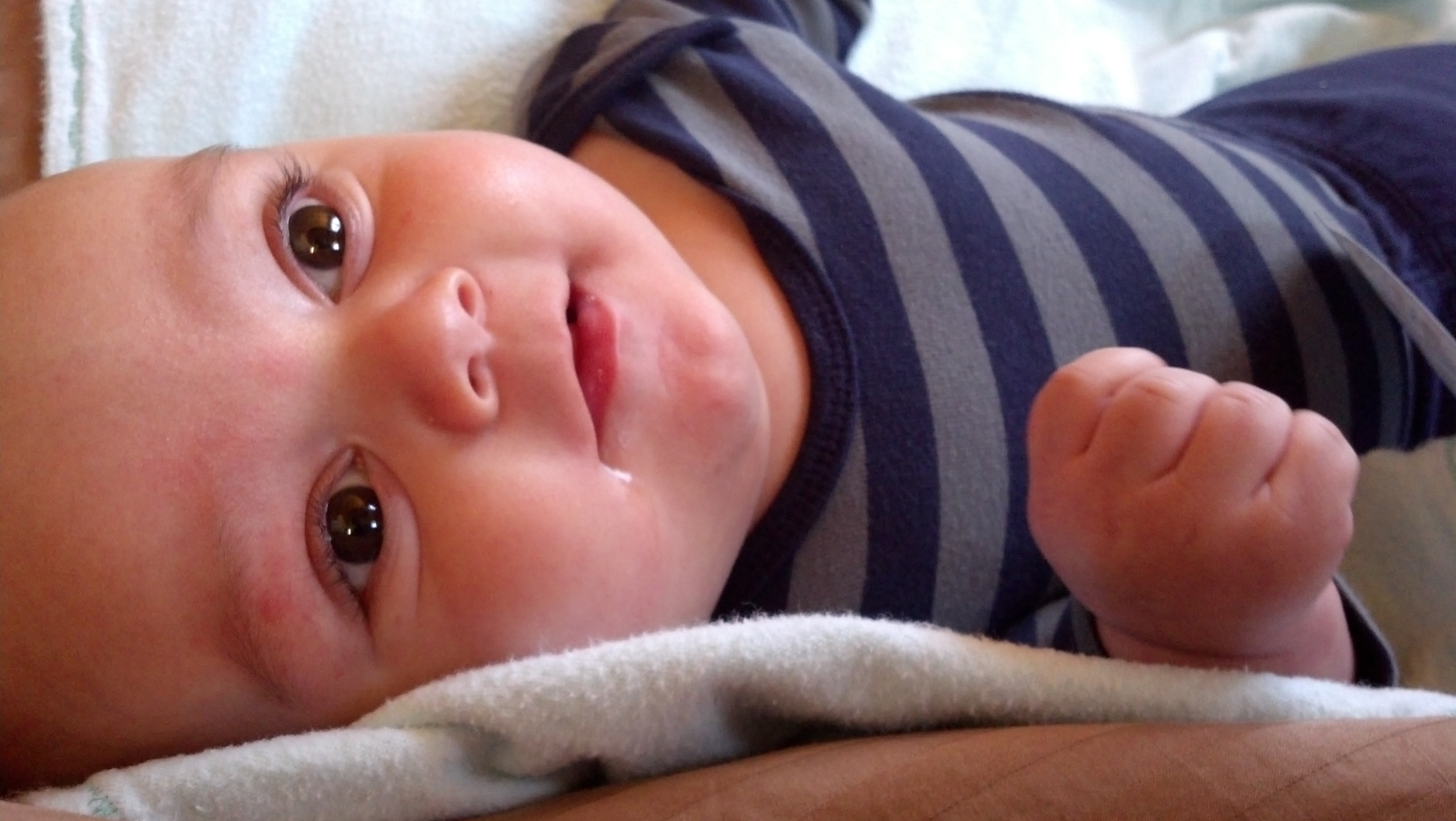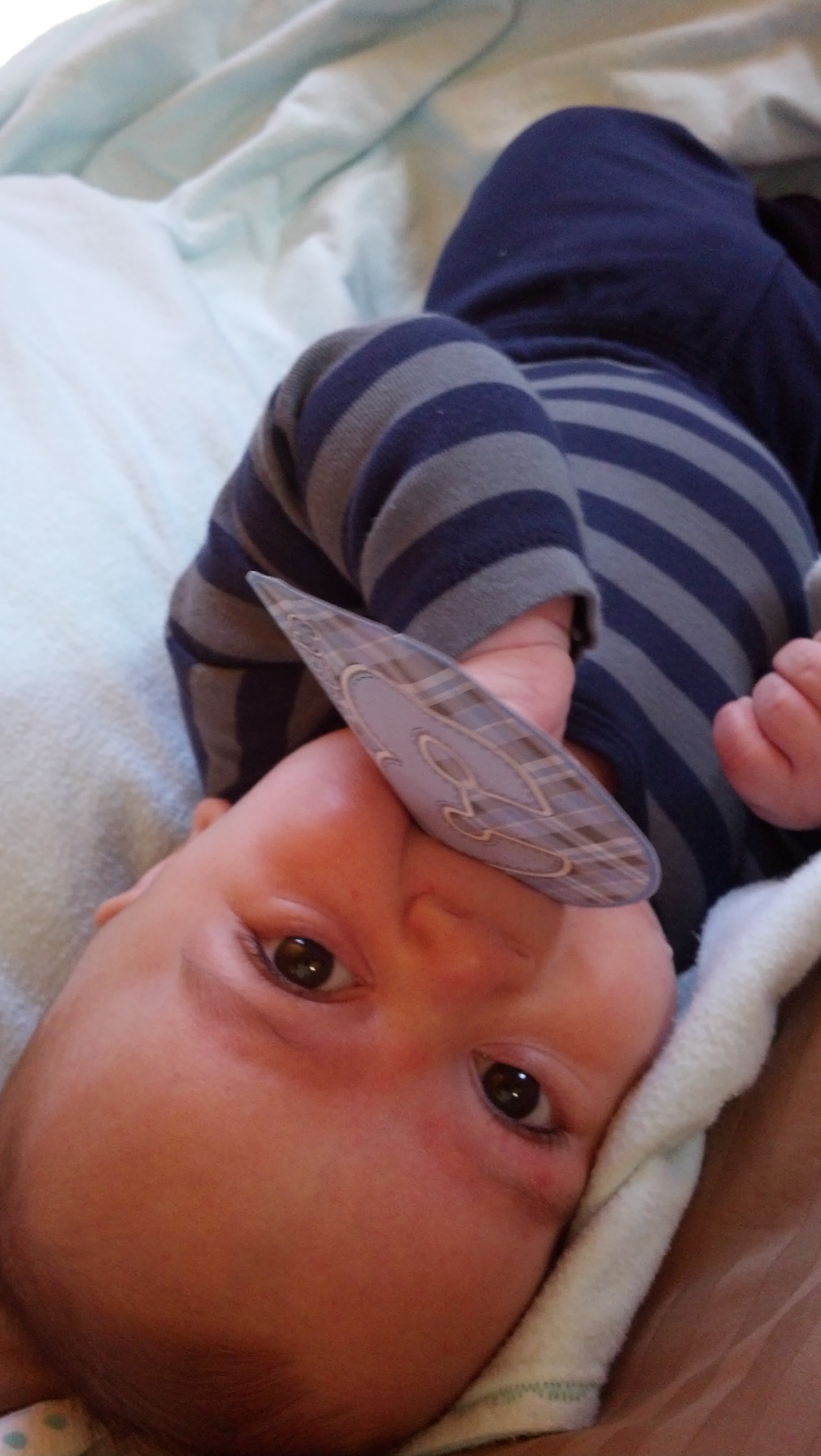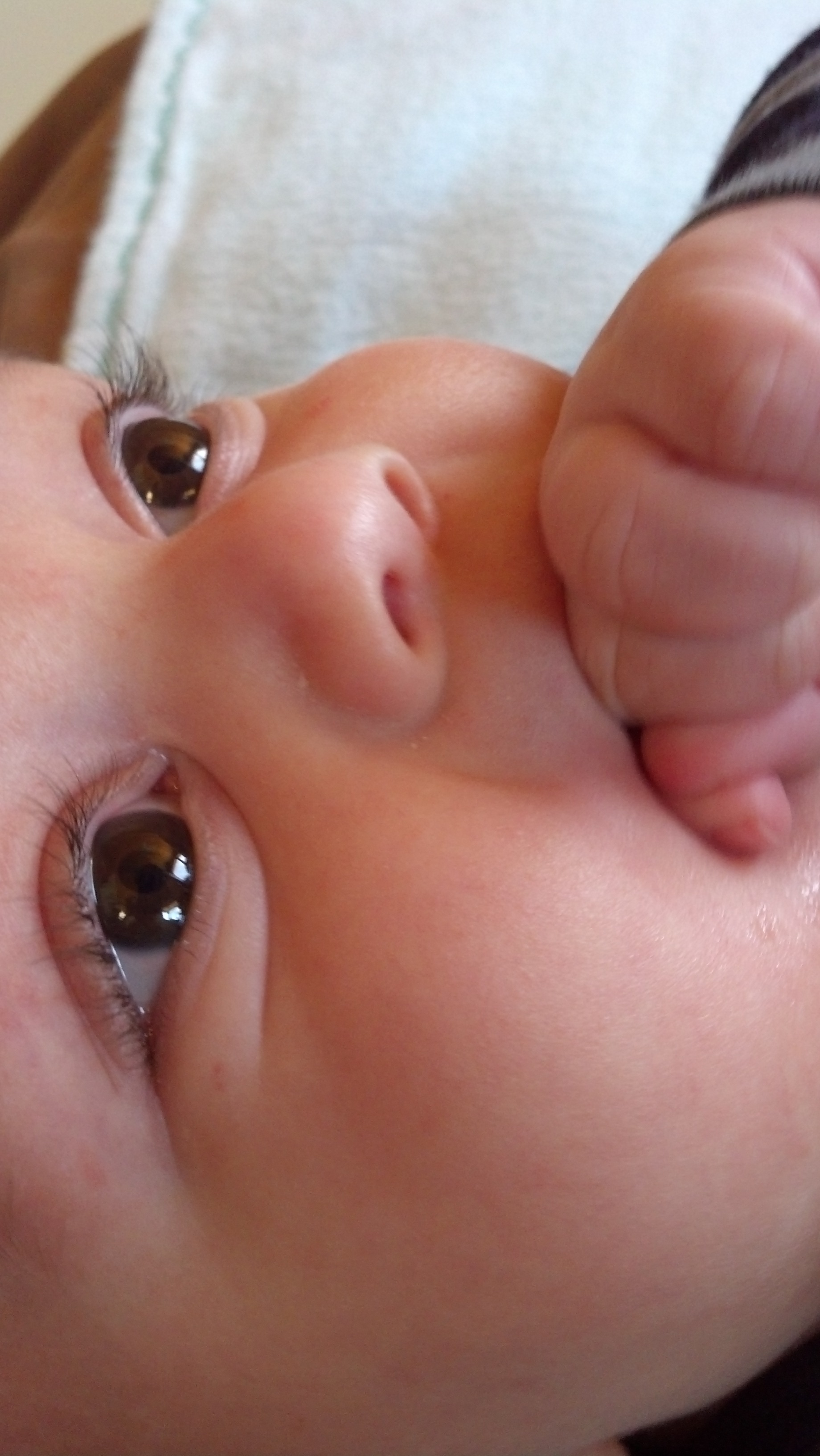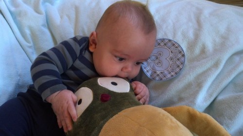 At his 2 month appt he was 14.8lbs (98th percentile). According to our scale, he’s now 16lbs which is somewhere in the 75th-90th percentile for weight! He seems to have elongated some but we haven’t measured his height. Eschewing numbers, this boy is strong and healthy. That’s all a mama and daddy can ask for.