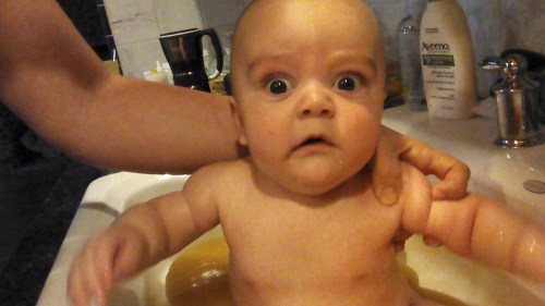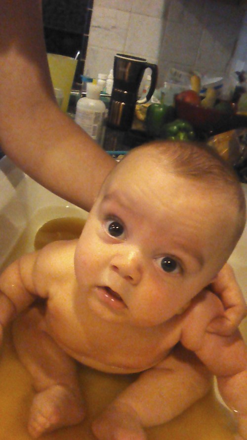 And a few videos: You will laugh if you watch this first one. If not, you are a robot. His first real laughs and first sign that he can anticipate are on this video, recorded on my birthday. Such a fun gift!