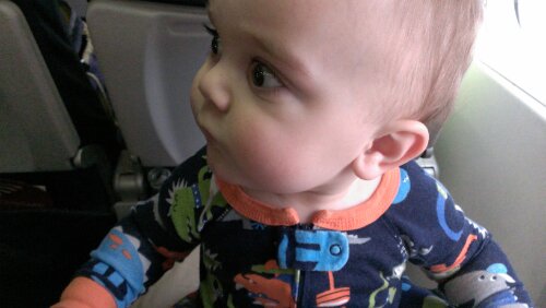 What Grey does on all plane rides. Needless to say, our row mates and the people behind us didn’t sleep well. 😉