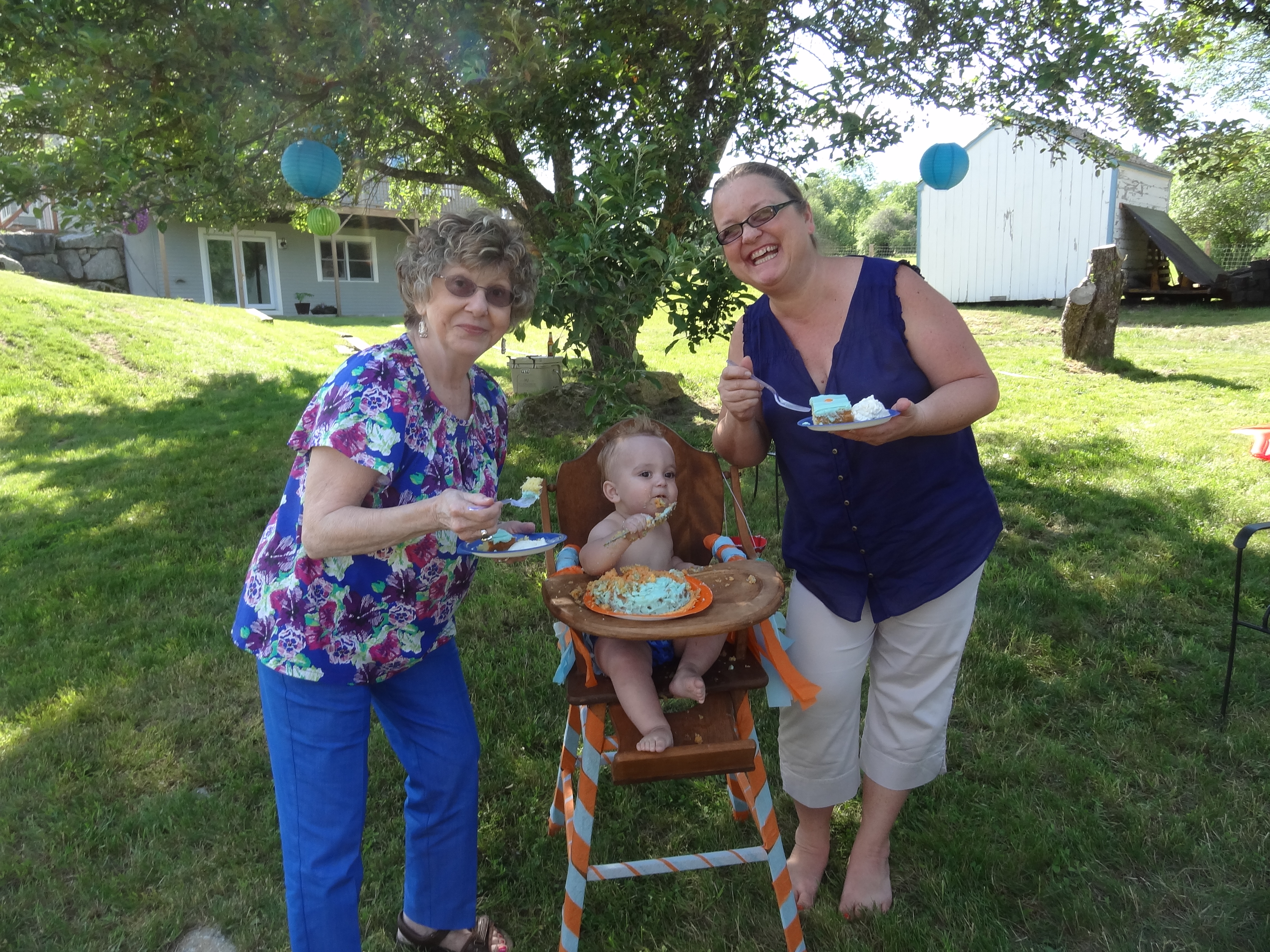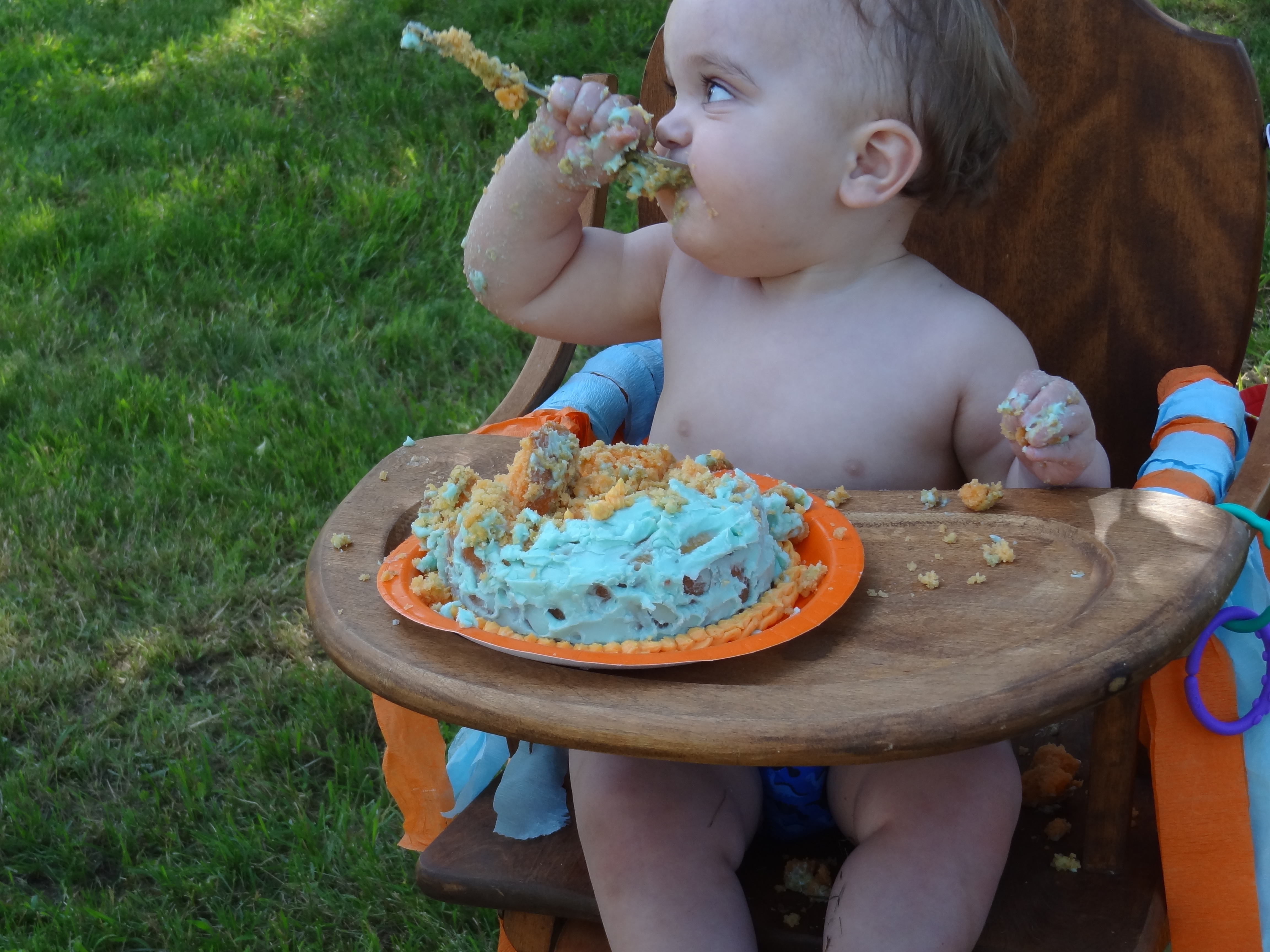 He loved his birthday party, and managed to stay awake for the whole thing! The smash cake wasn’t necessarily smashed, but was well enjoyed. He picked the polka dots off one by one for a few minutes before he realized the cake itself was edible too. Then he took a spoon to it and did some damage.