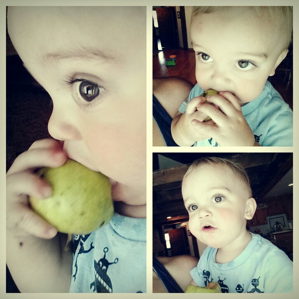 First apple from the tree in the backyard. He’s eaten several since! I think he likes using his teeth so much.