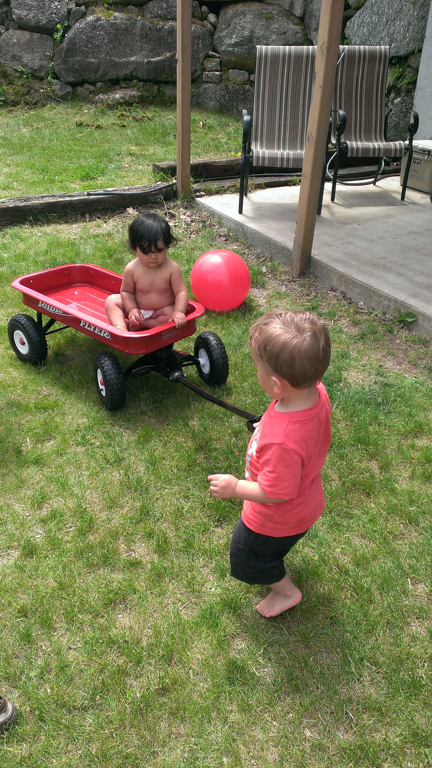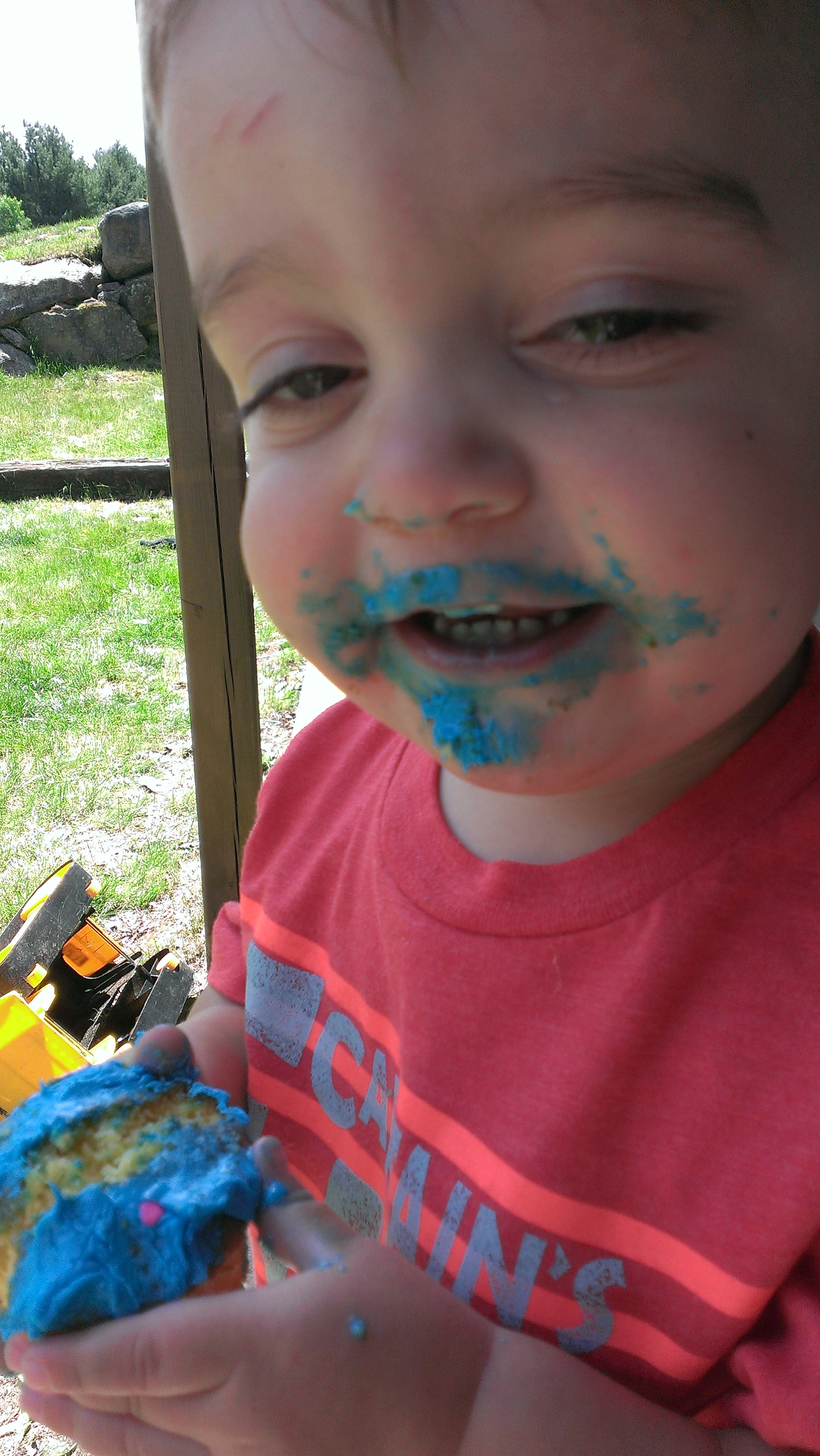 Grey’s birthday party was this weekend- we had a gaggle of toddlers running around the backyard and blue frosting on the cupcakes, much to my mom friends’ chagrin. 😉 I have a few pictures, and I have a lead on some more. Here’s what I have so far.