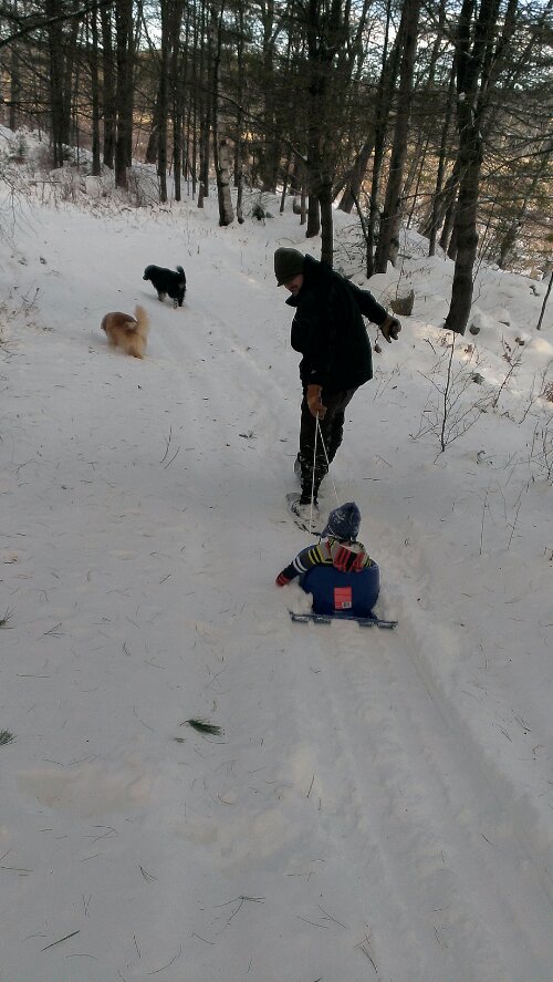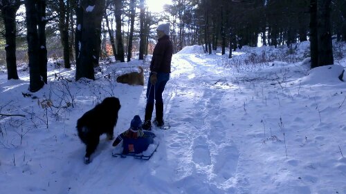 We took turns lugging our little sack of potatoes through the snow. Uphill was surprisingly difficult!