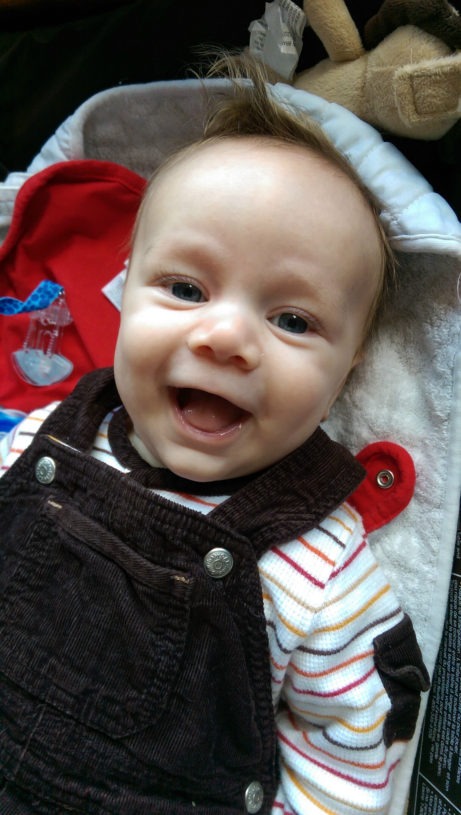So, Reed has been on a mission to catch up on lost calories ever since his surgery. I knew he was chunking up, but we didn’t have numbers til today at his checkup. He now weighs 17lb 6oz and is 26.5 inches long! Apparently he set off warnings in their computer system for both height and weight because he grew so quickly.
